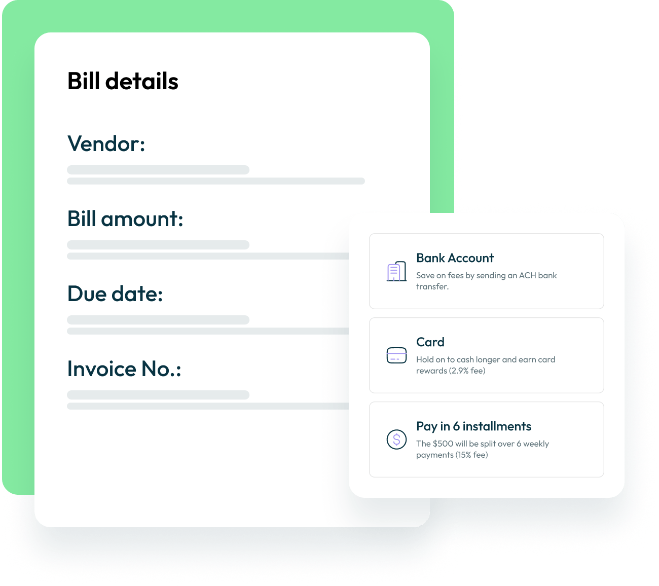 Pague de la forma que más le convenga -transferencias bancarias ACH o tarjeta de crédito- y sus proveedores recibirán un cheque o una transferencia bancaria -a lo que ya estén acostumbrados-.
